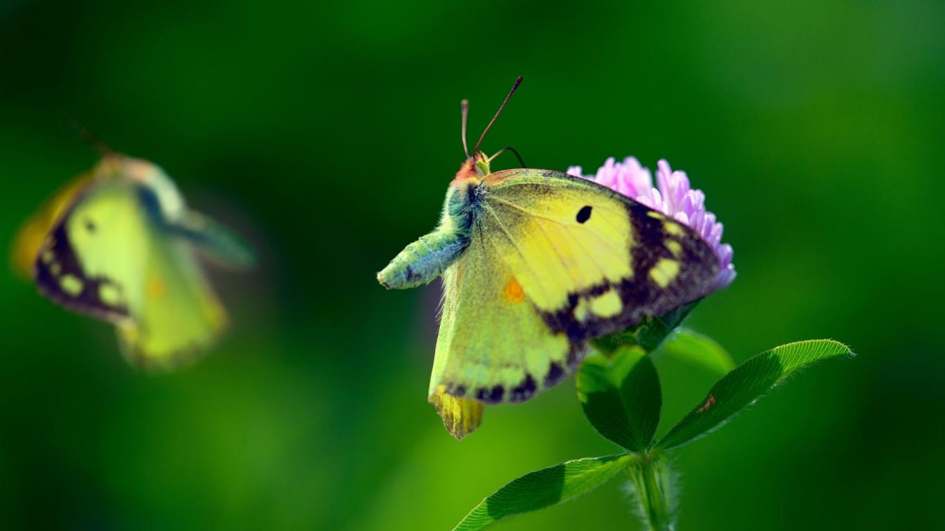 Wallpaper Butterfly with yellow wings on leaves