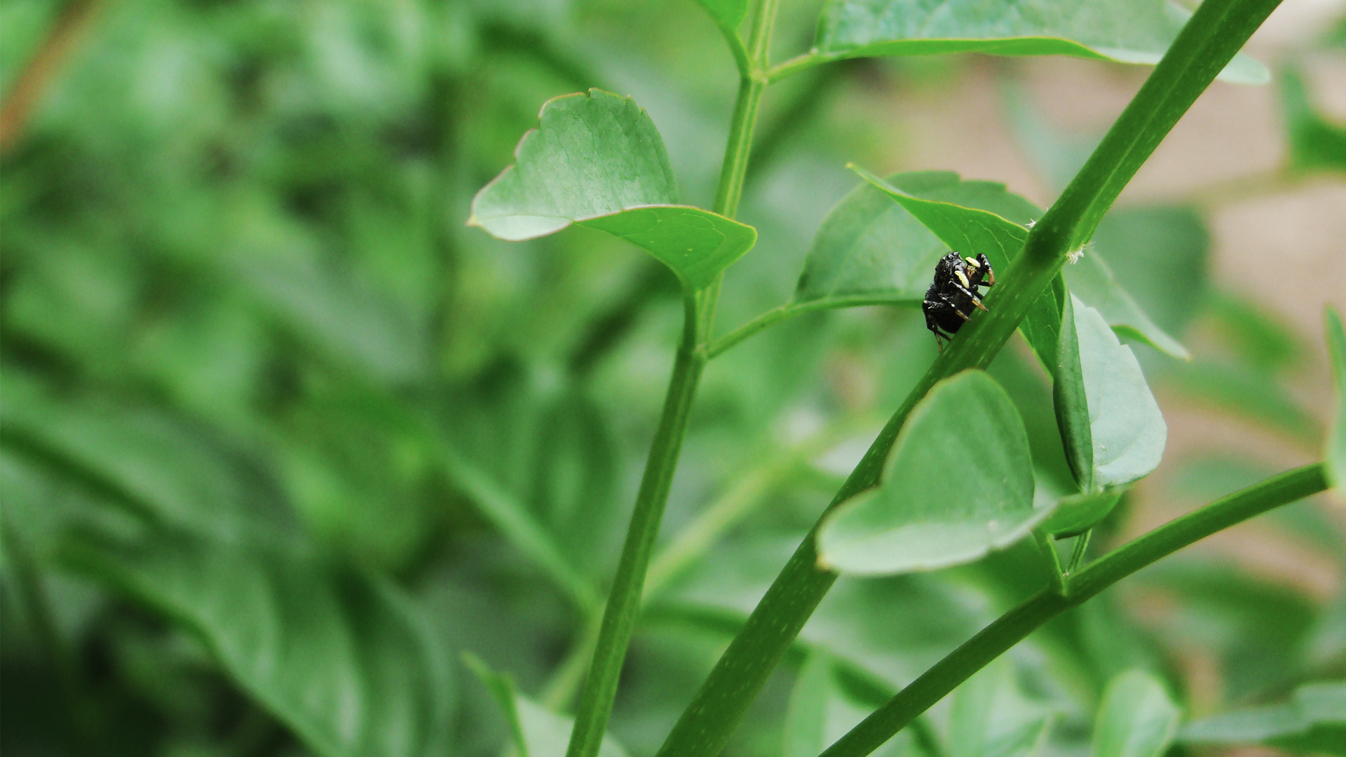 Wallpaper Beetle crawling on green stem