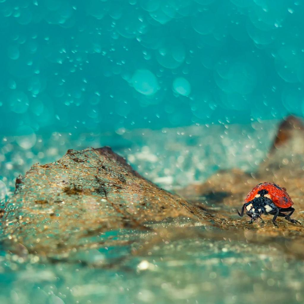 Wallpaper Ladybug in the rain