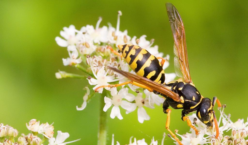 Wallpaper Wasp on white flower