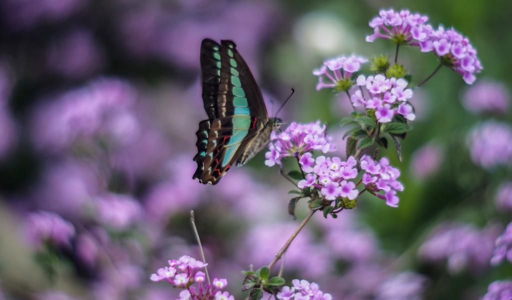 Wallpaper Butterfly on purple flowers