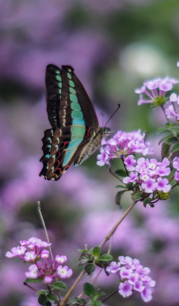 Wallpaper Butterfly on purple flowers