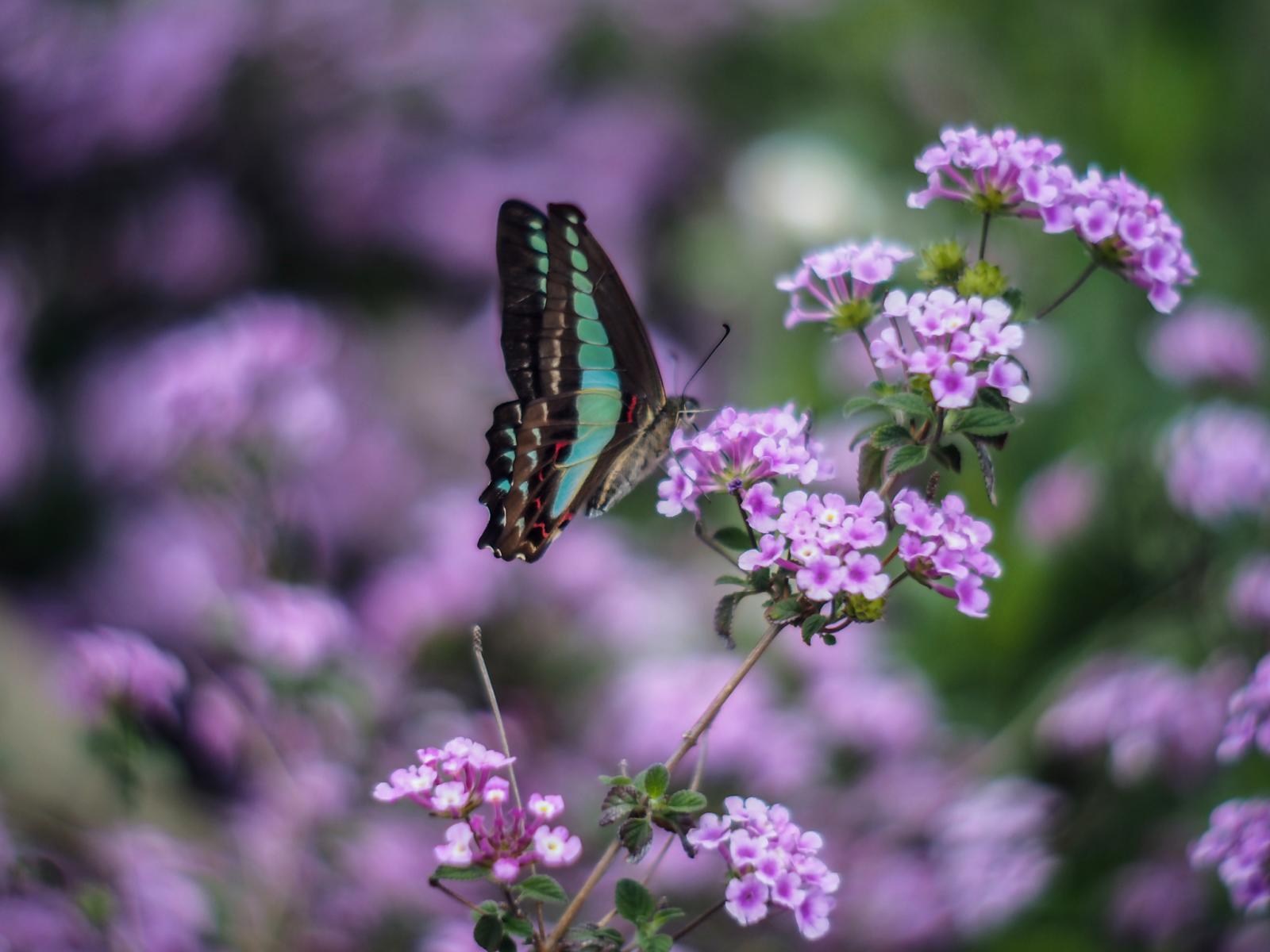 Wallpaper Butterfly on purple flowers