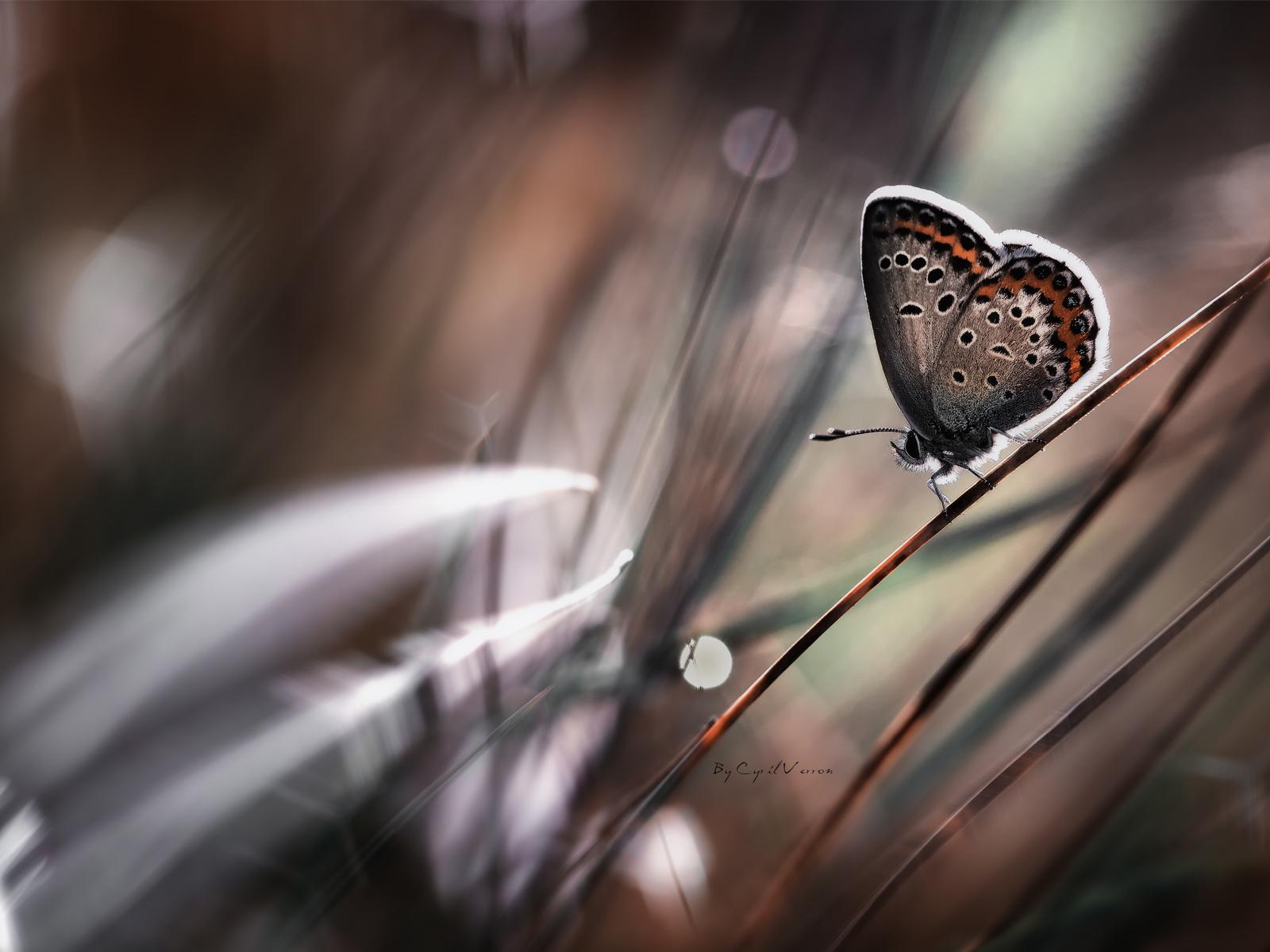 Wallpaper Butterfly on a stalk