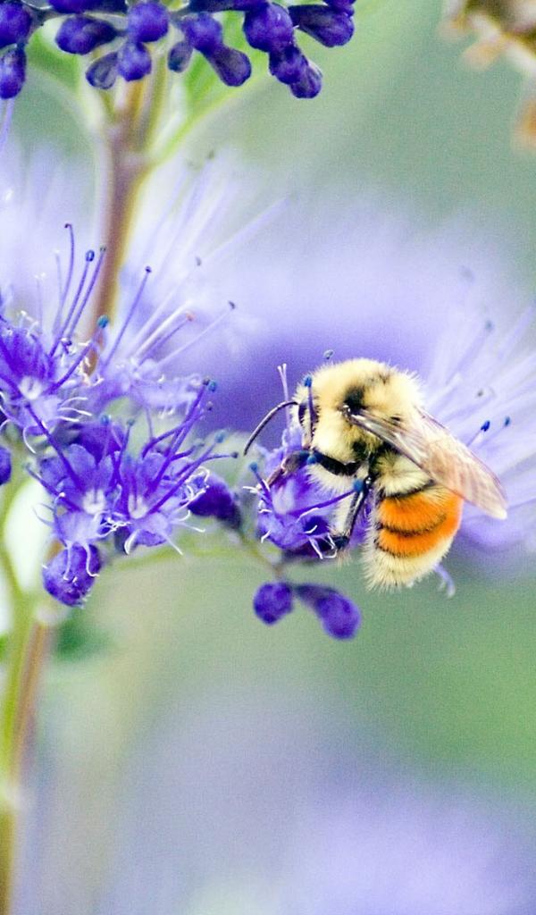 Wallpaper Bee on a blue flowers