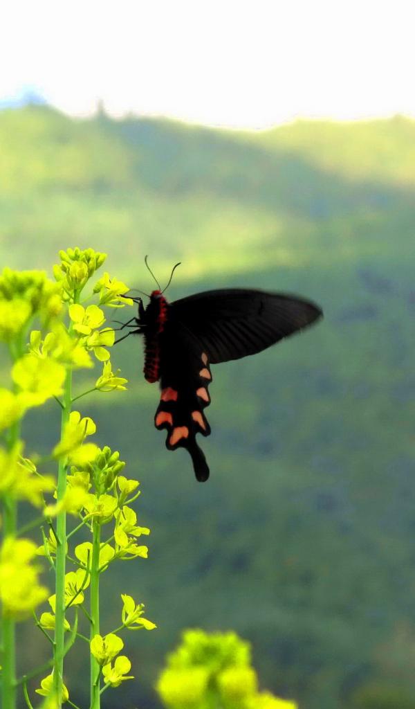 Wallpaper Black butterfly on yellow flower