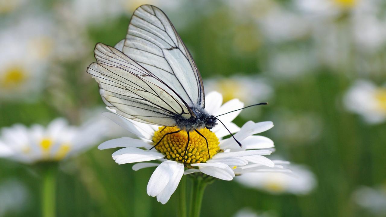Wallpaper White butterfly on camomile