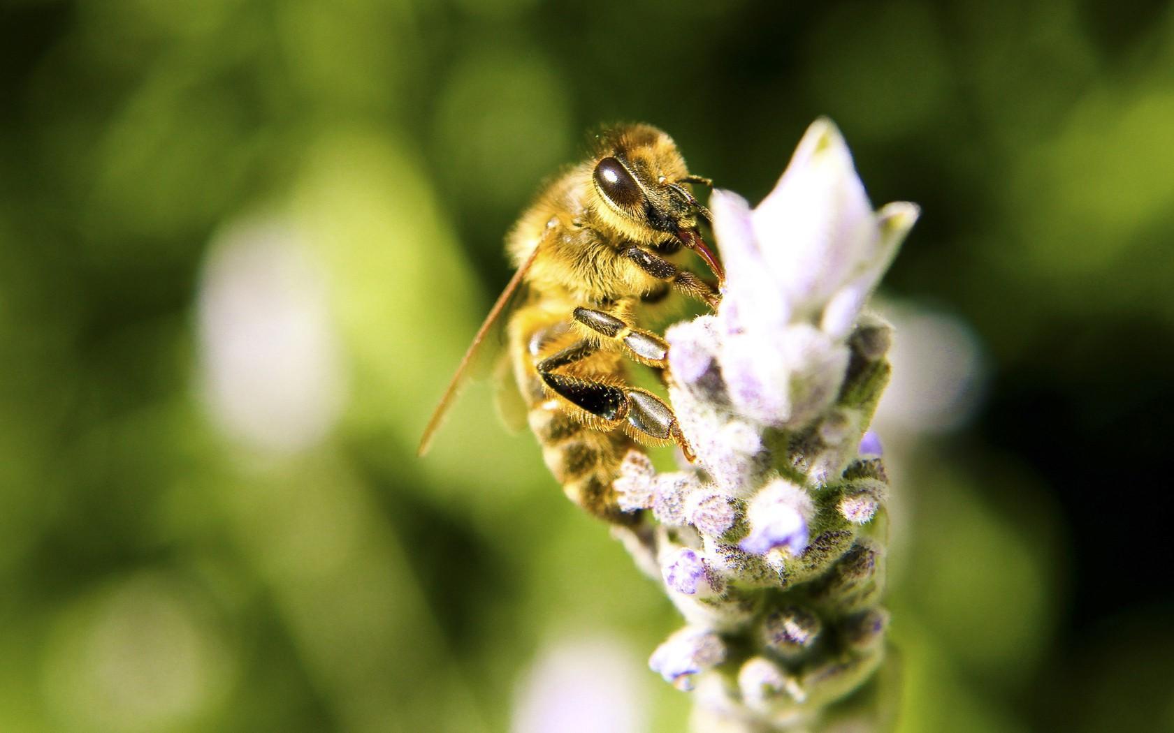Wallpaper Bee flower collects honey