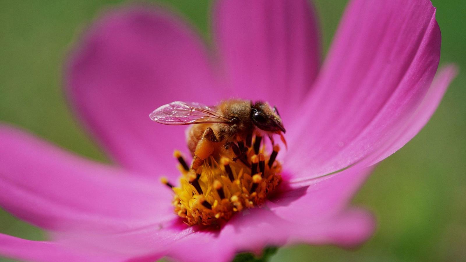 Wallpaper Bee on a flower melliferous
