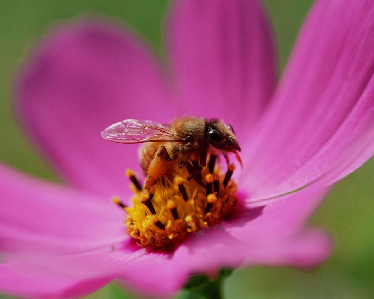Wallpaper Bee on a flower melliferous