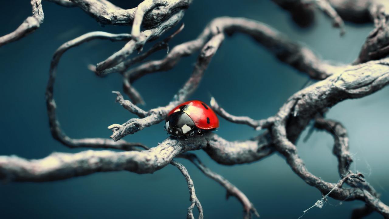 Wallpaper The blue theme with a ladybug