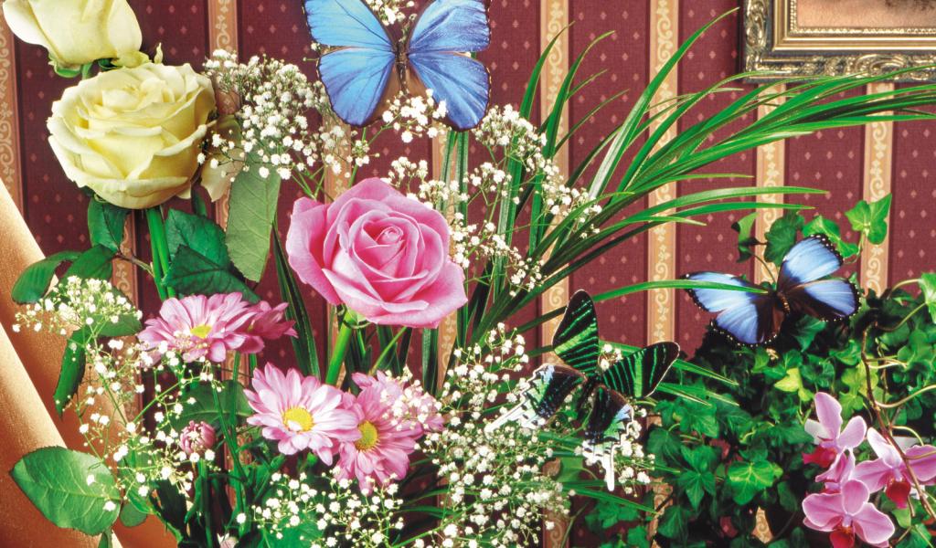 Wallpaper Multicolored butterfly flowers