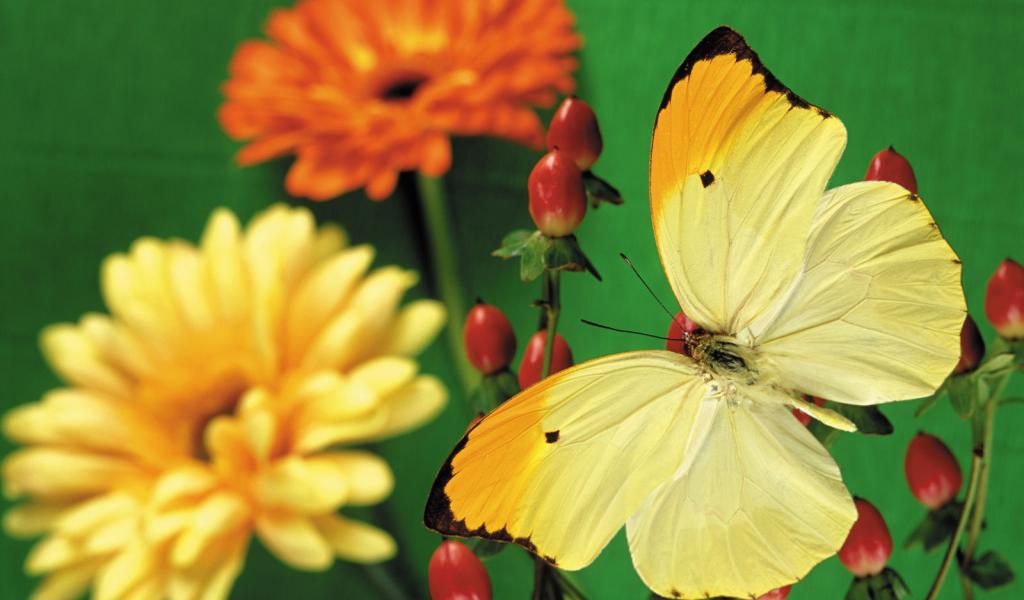 Wallpaper Butterfly and yellow flowers