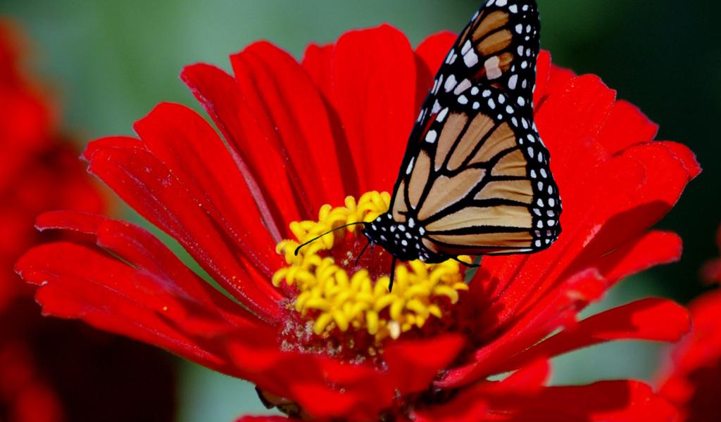 » Wallpaper Butterfly on red flower