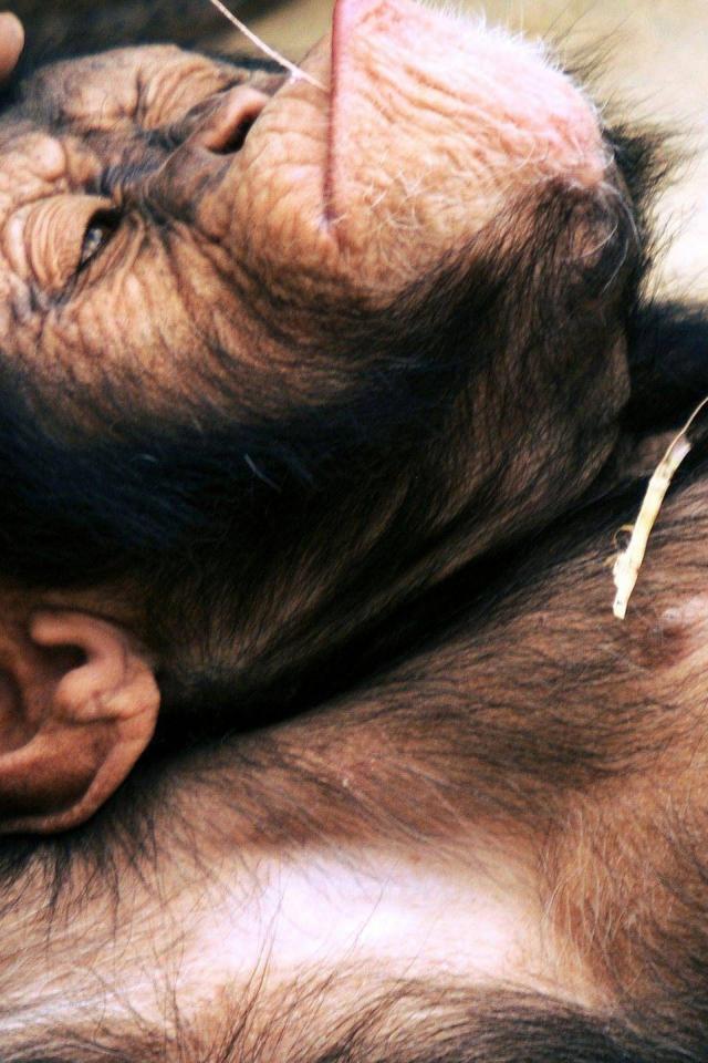 Wallpaper Macaque lying on his back with cones in hand