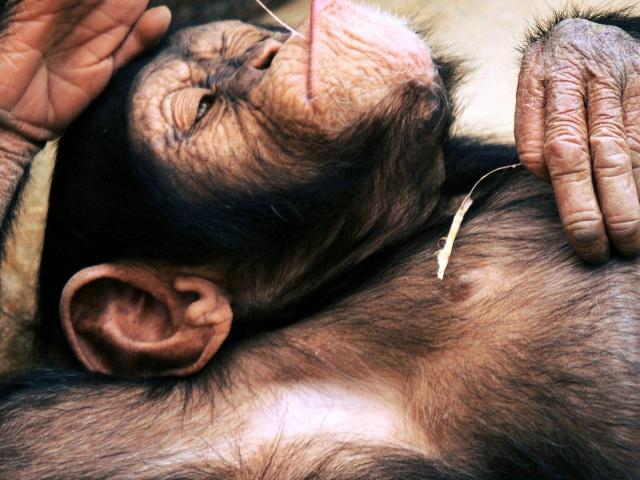 Wallpaper Macaque lying on his back with cones in hand