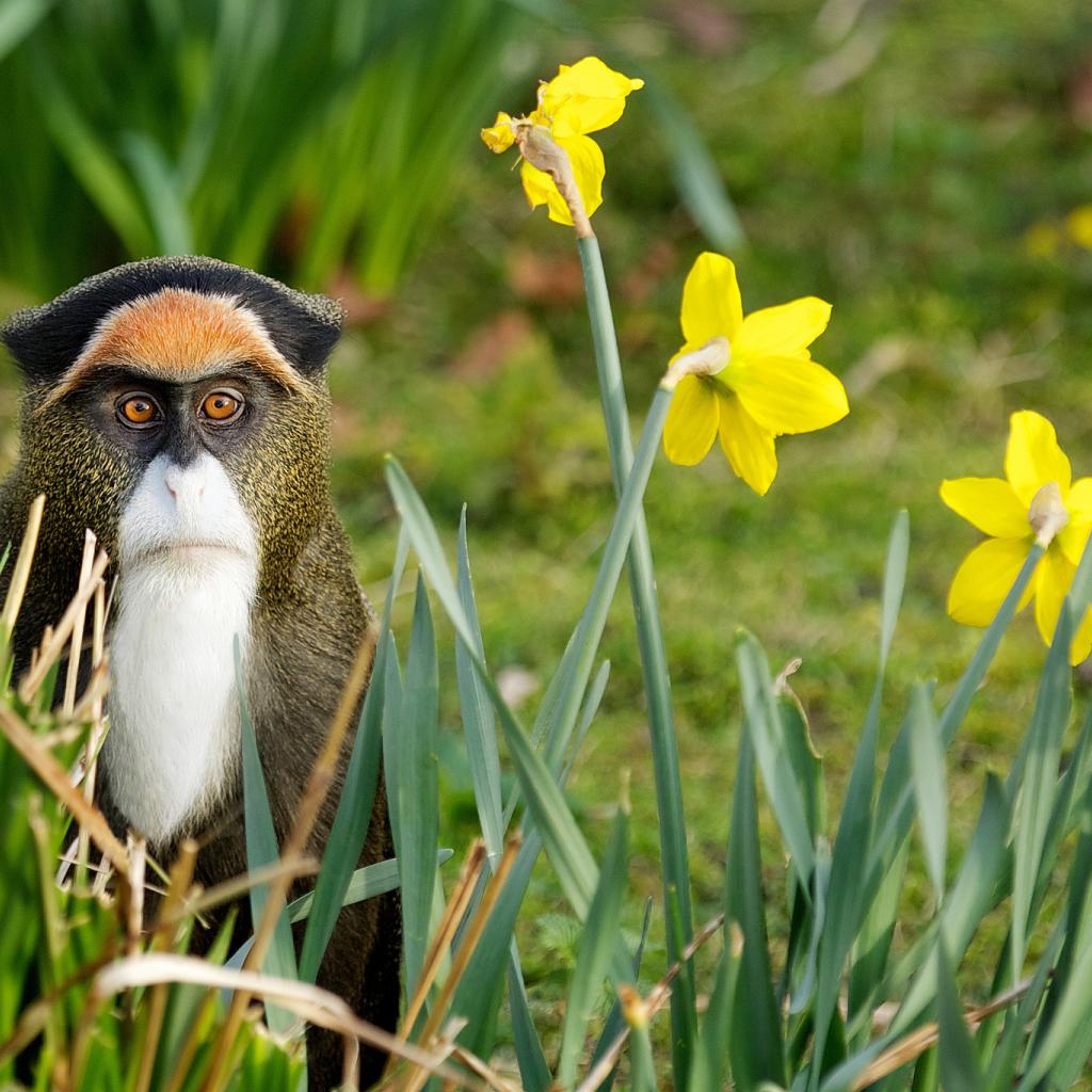 Wallpaper Monkey among flowers