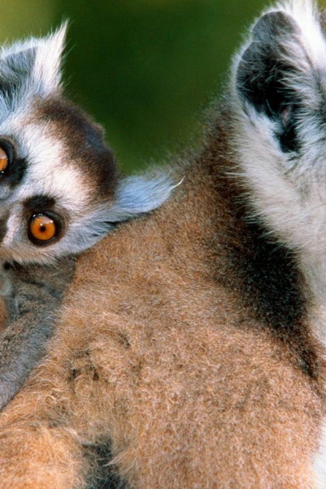 Wallpaper Lemur with a baby on the back