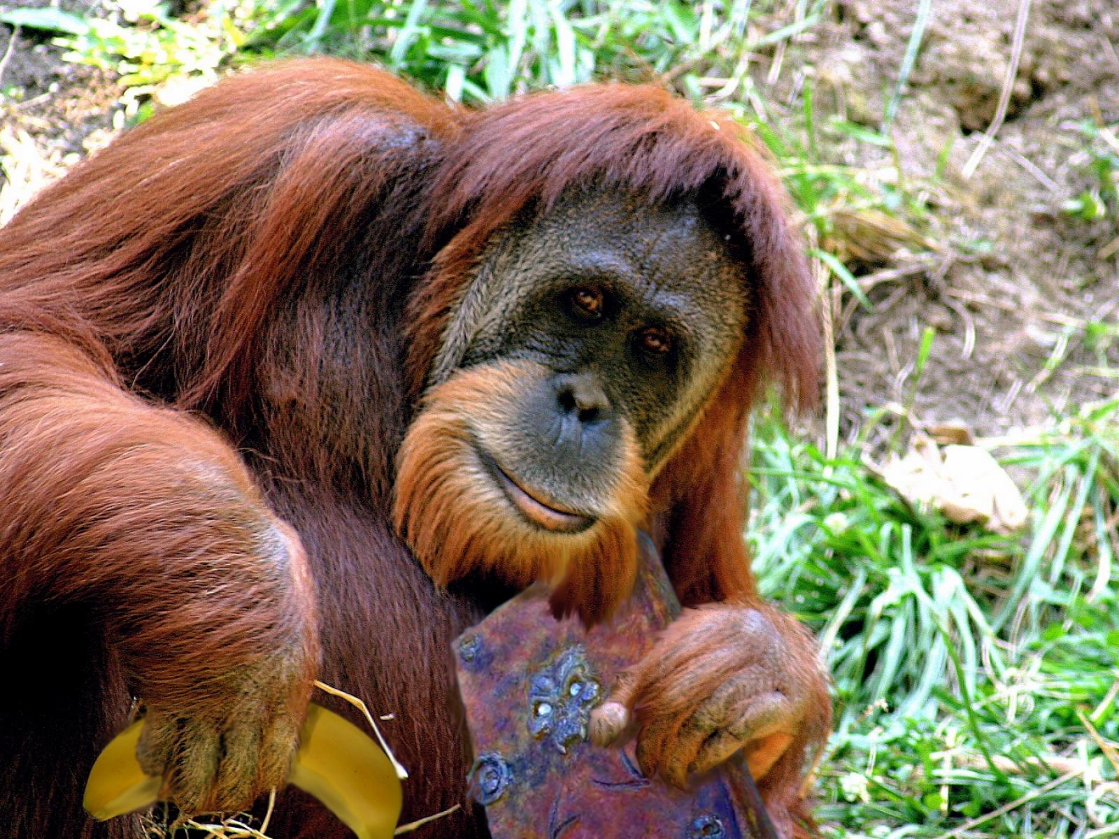 Wallpaper Orangutan with a book and a banana