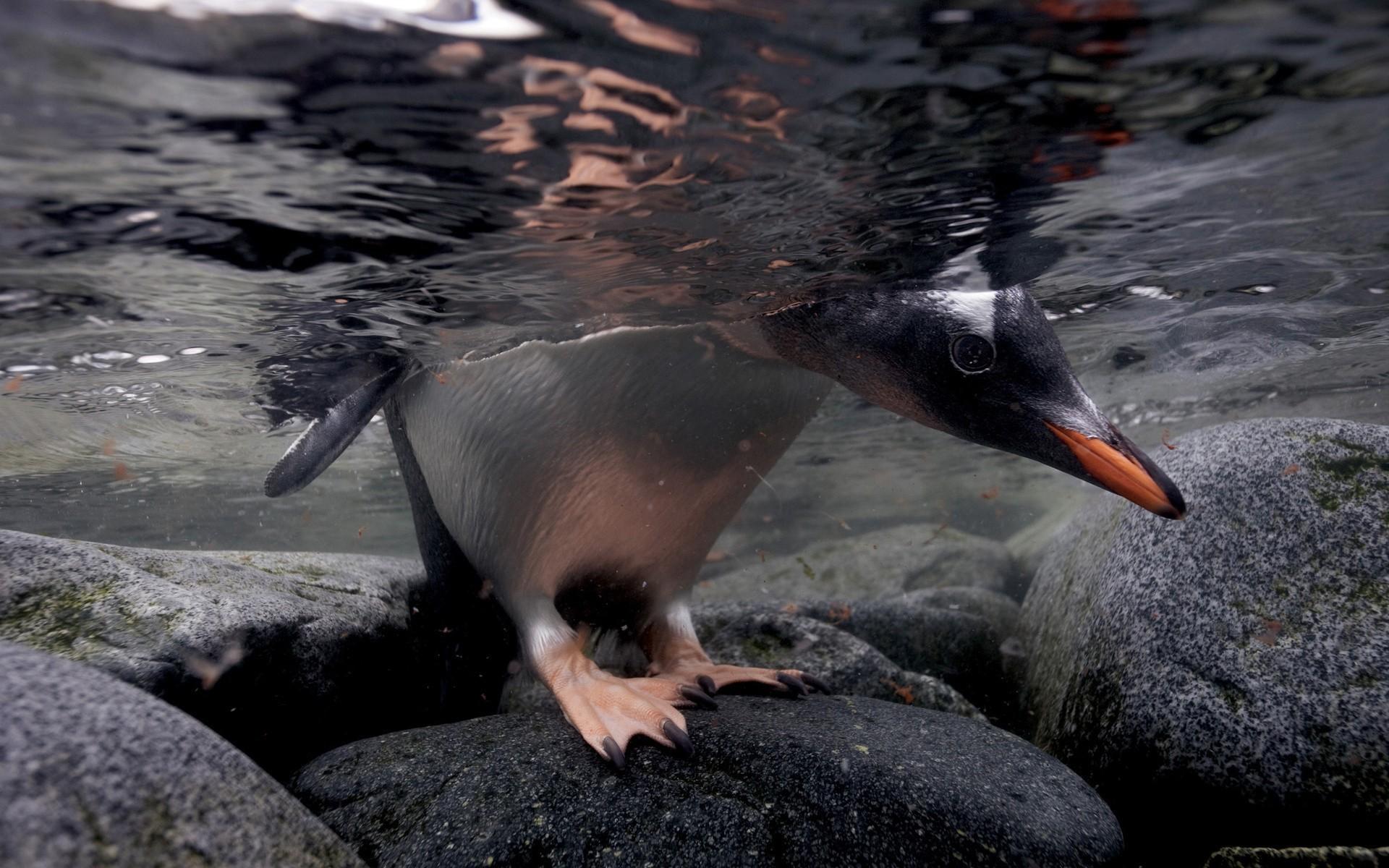Wallpaper The head and paws penguin under water