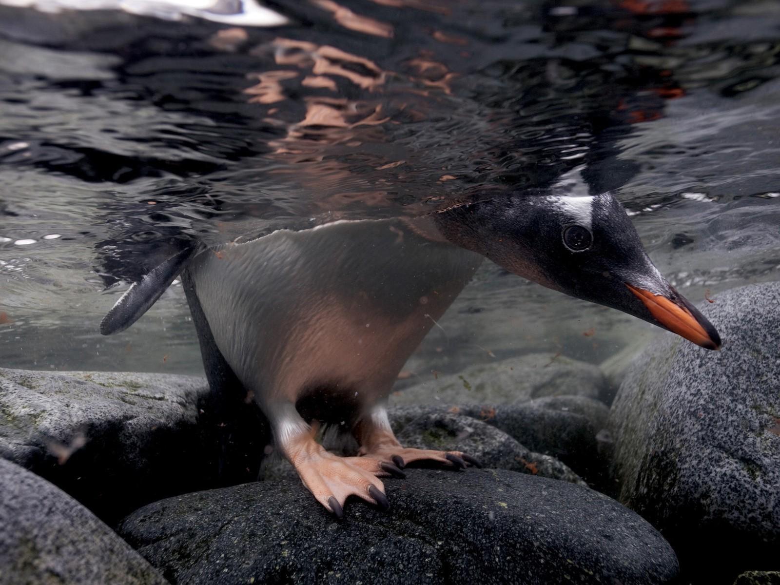 Wallpaper The head and paws penguin under water