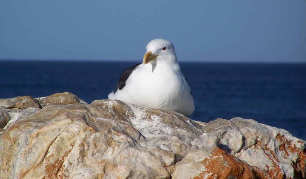 Wallpaper Seagull sitting on a rock by the sea