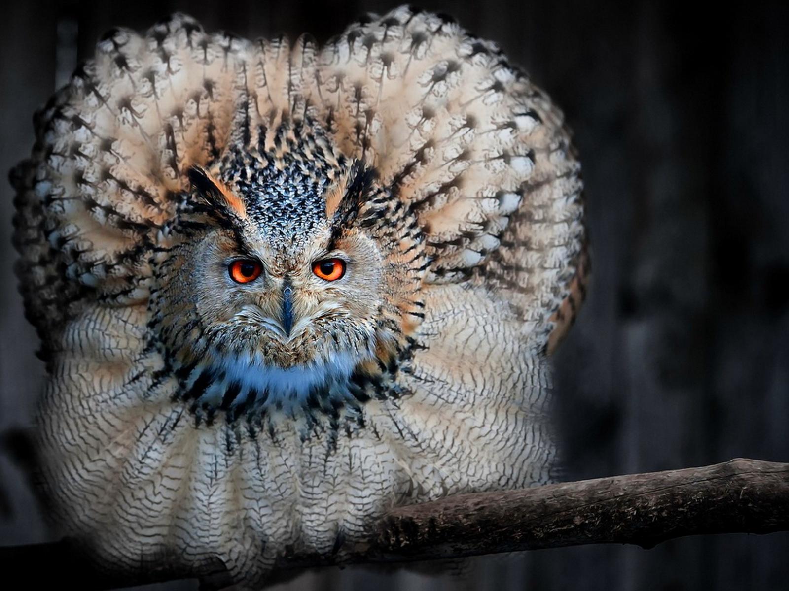 Wallpaper Owl sitting on a branch dissolved feathers