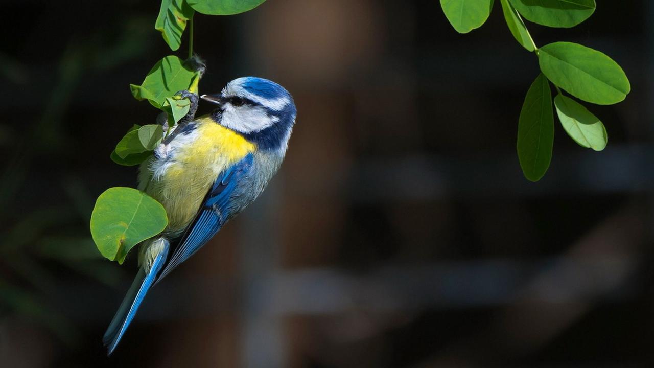 Wallpaper Tit sitting on green leaves