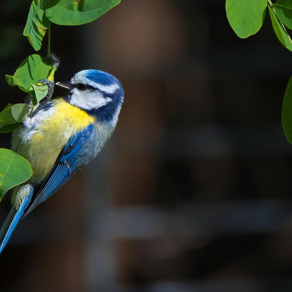 Wallpaper Tit sitting on green leaves
