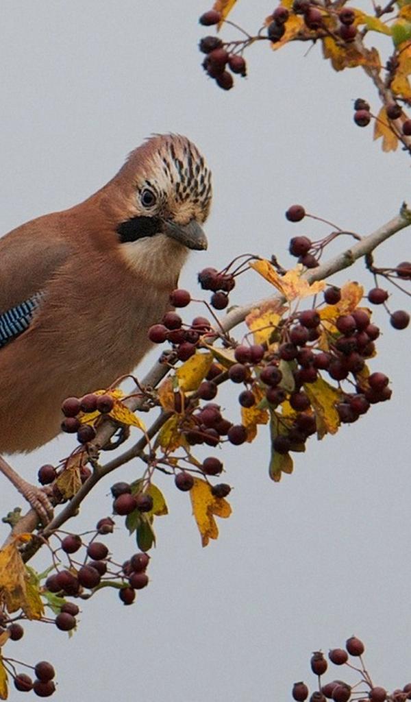 Wallpaper Beautiful brown bird on a branch with berries