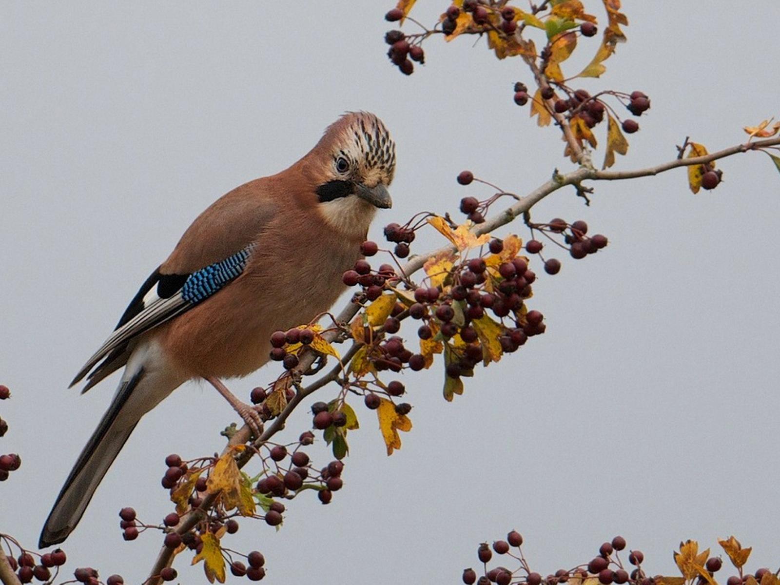 Wallpaper Beautiful brown bird on a branch with berries