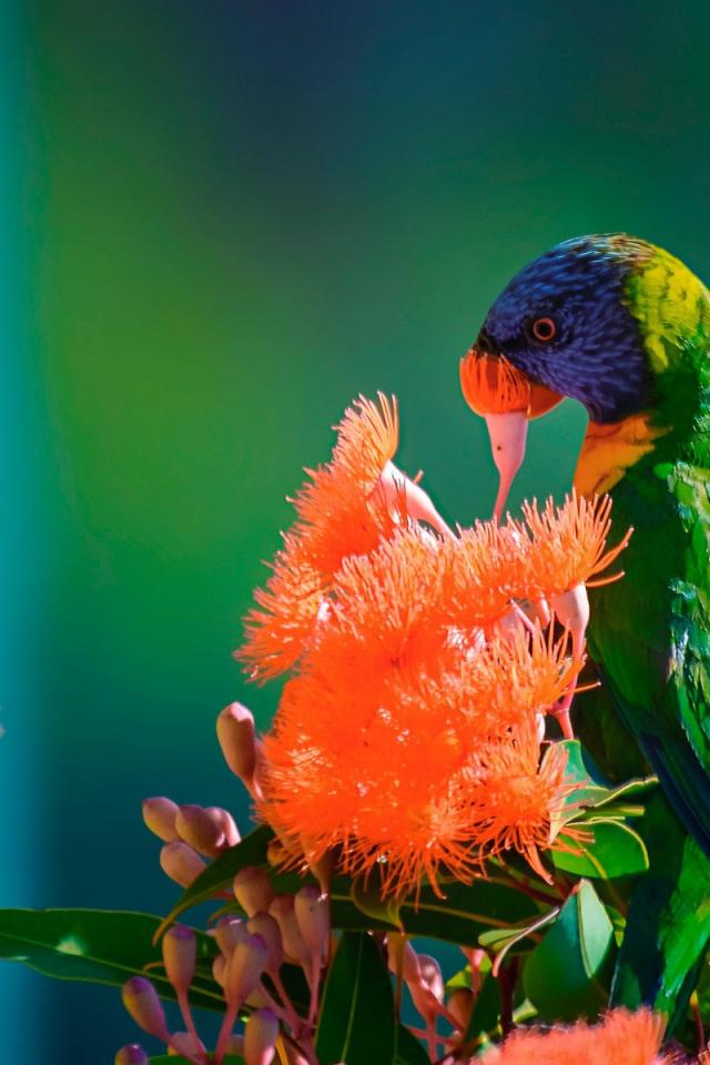Wallpaper Green Parrot on red