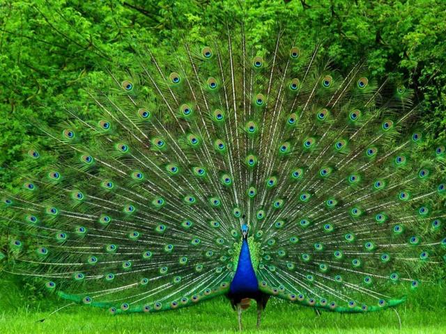 Wallpaper Green peacock feathers on wood background