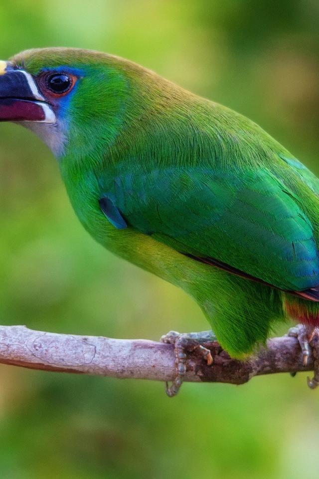 Wallpaper Green bird with a large beak in the tropics