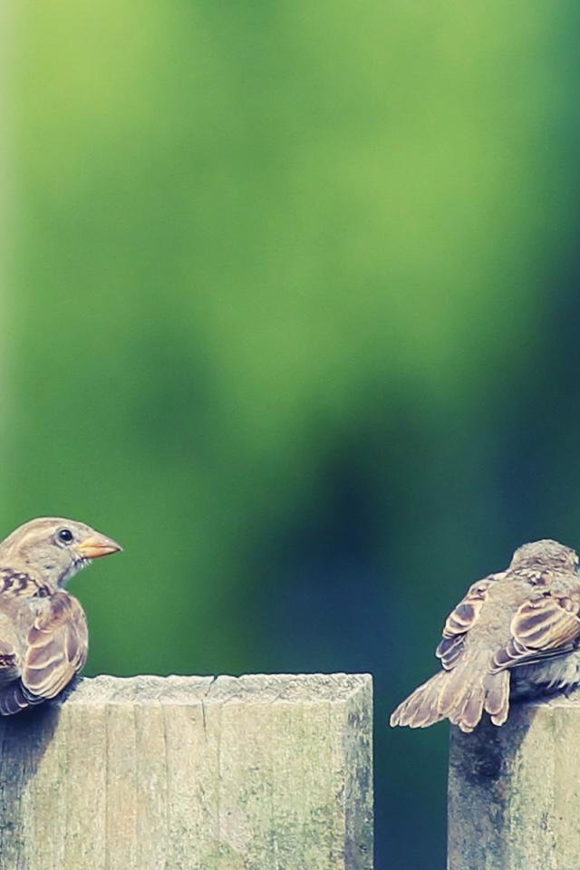 Wallpaper A pair of sparrows on a wooden fence