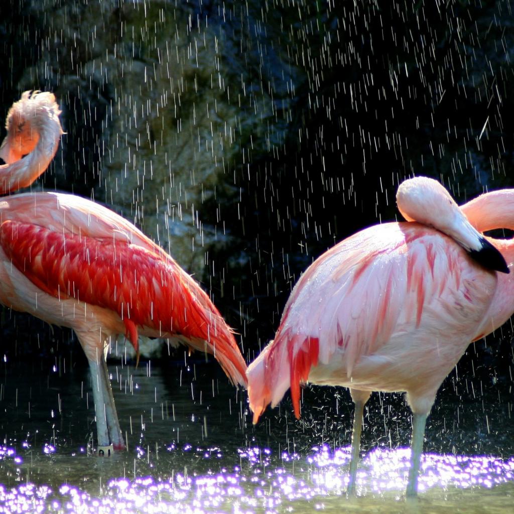 Wallpaper Flamingos by water drops
