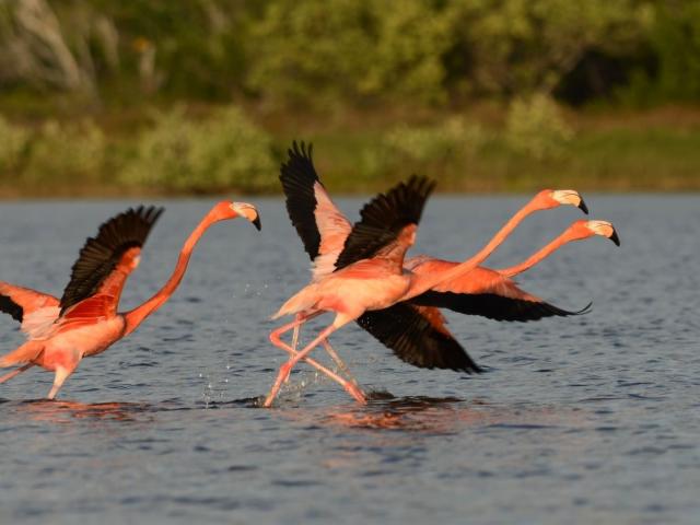 Wallpaper Birds flamingo with black wings