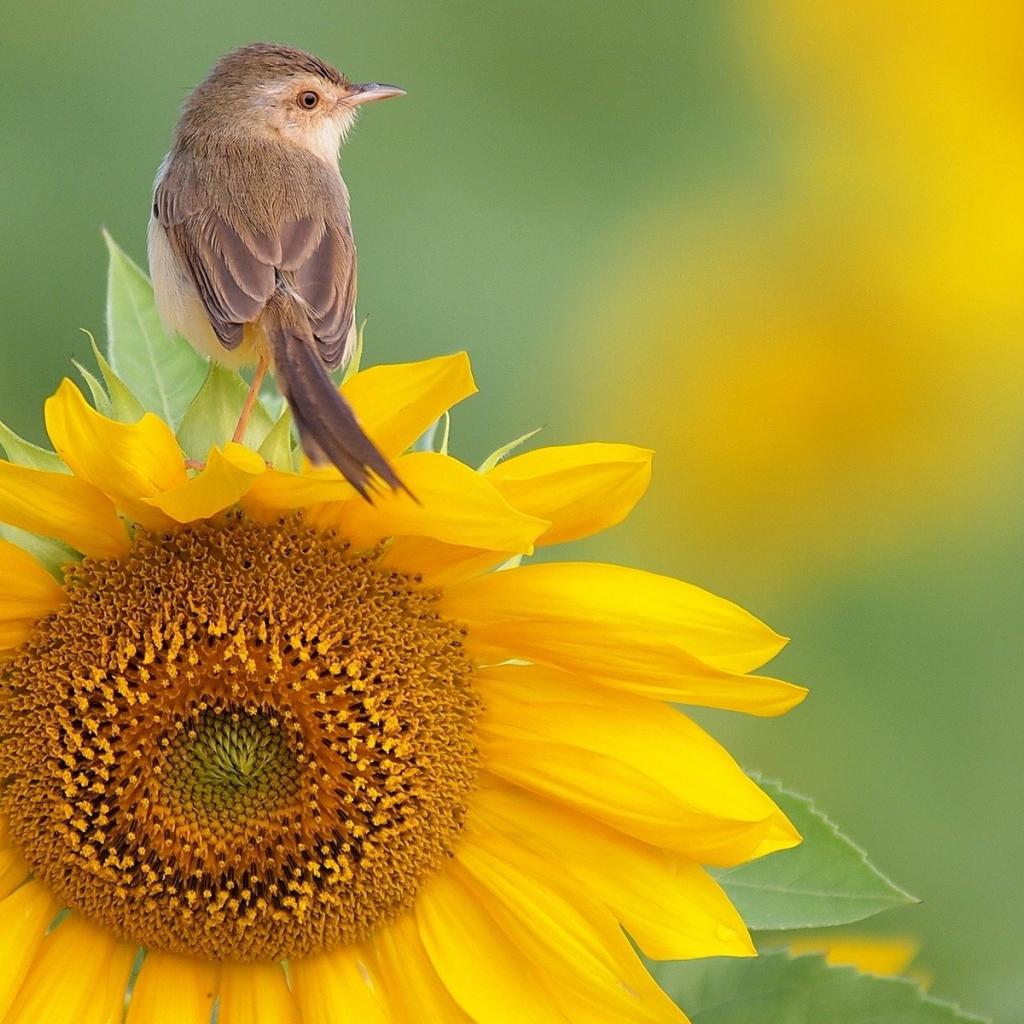 Wallpaper Bird on a flower sunflower