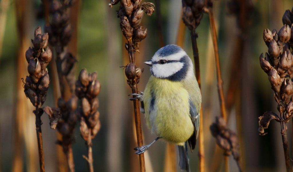 Wallpaper Tit on dry spikelet weed