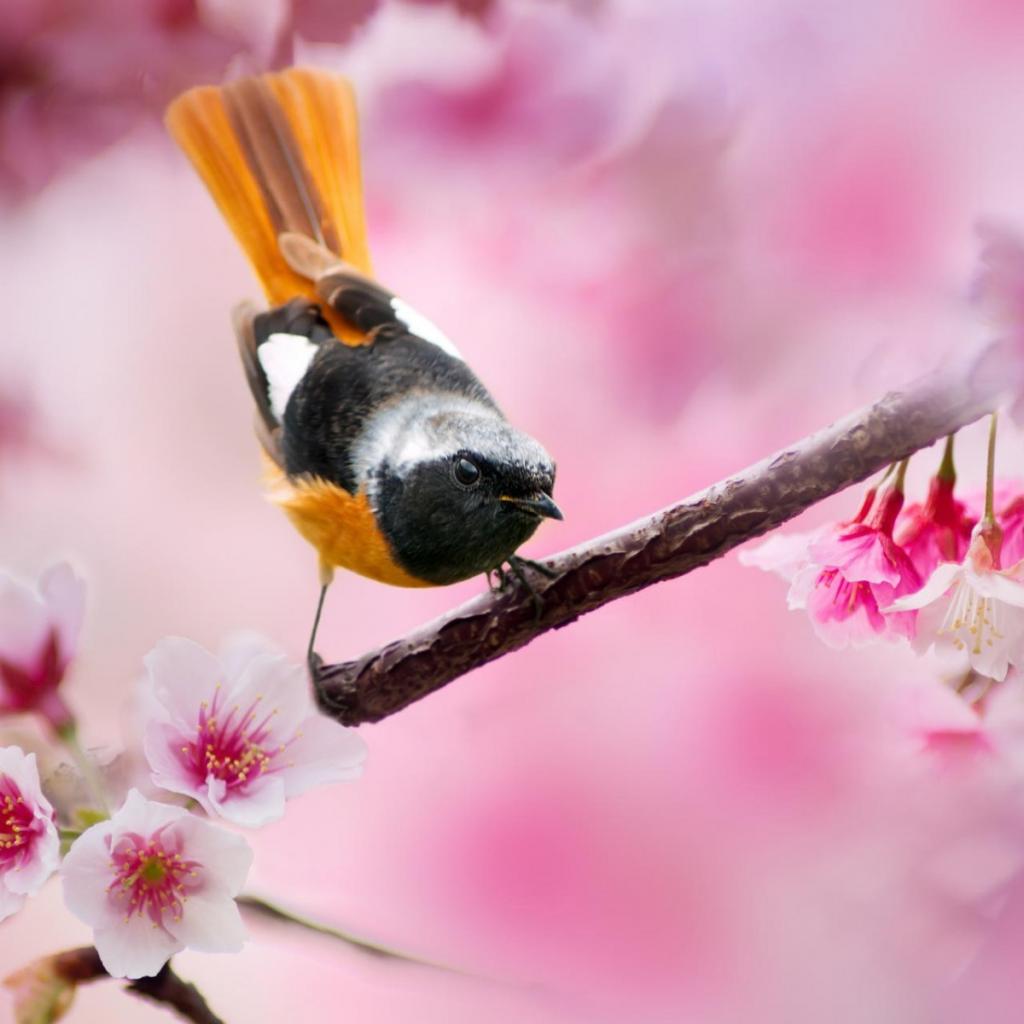 Wallpaper Singing bird with orange tail
