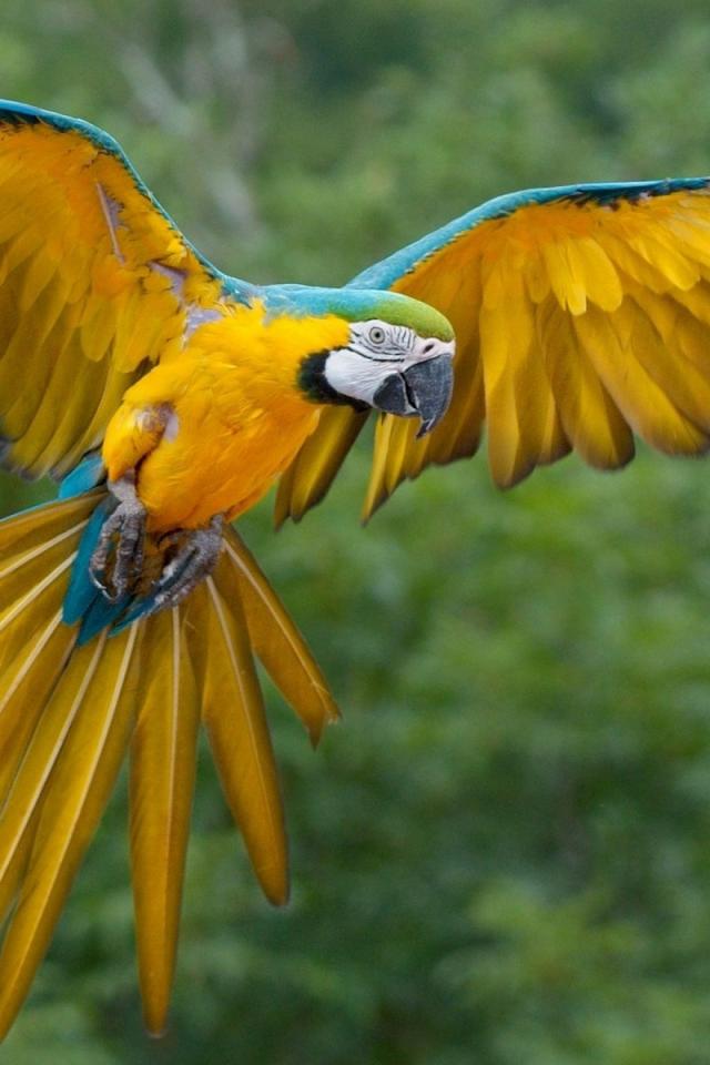 Wallpaper Yellow Macaw parrot with blue feathers on the edge of the wing