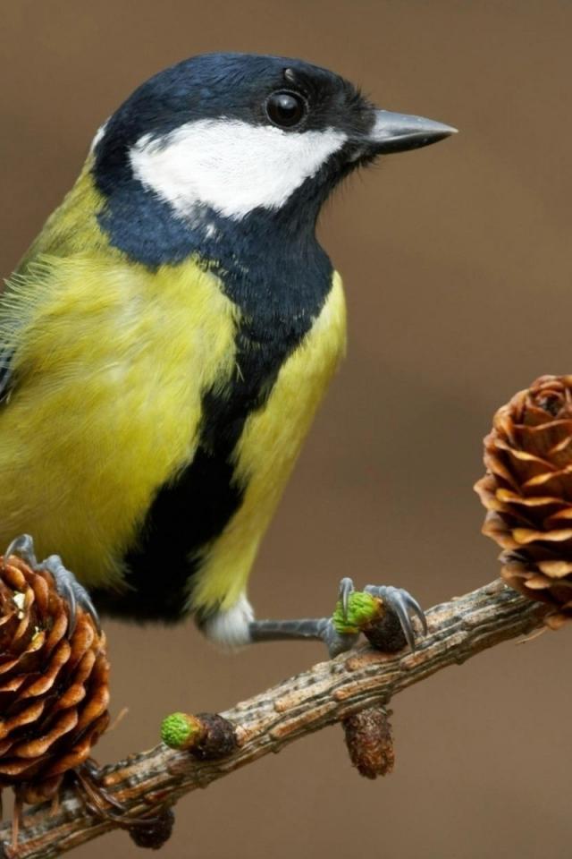 Wallpaper Tit on a branch with buds