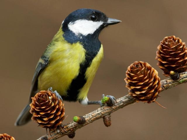 Wallpaper Tit on a branch with buds