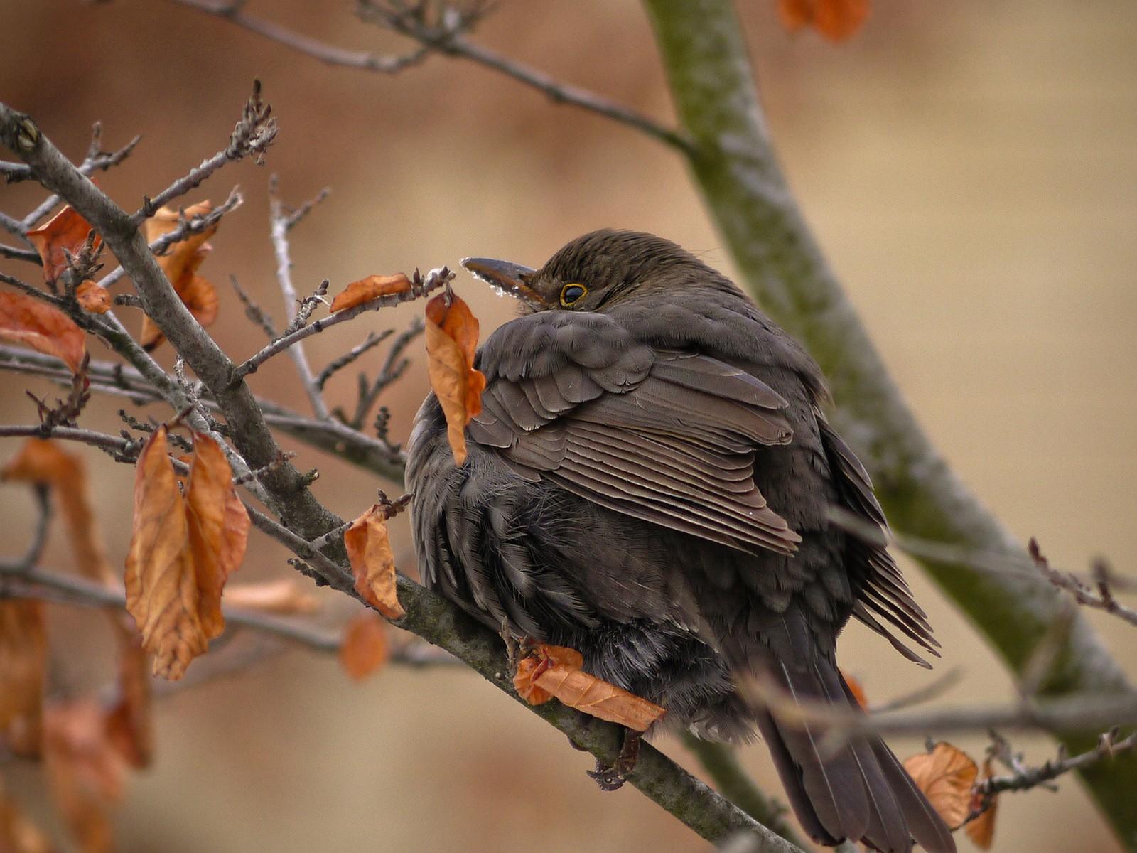 Wallpaper A bird with black feathers sitting on a branch