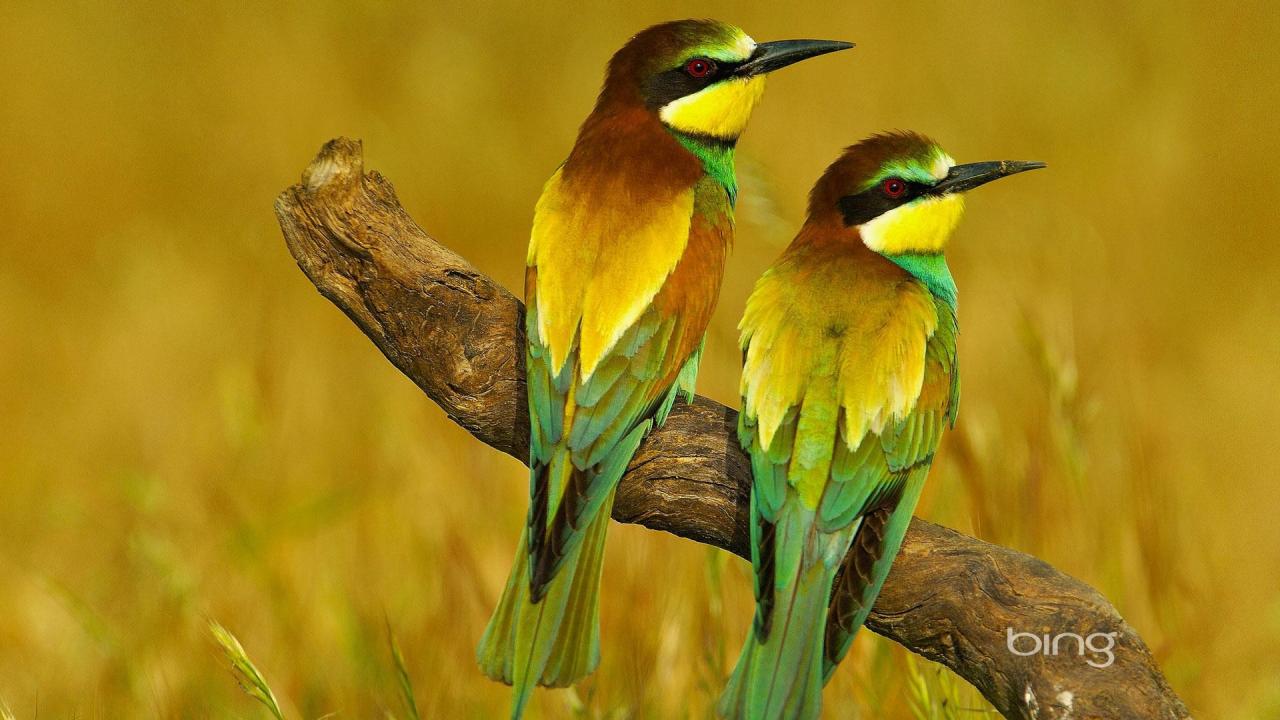 Wallpaper Pair of bee-eater on dried driftwood