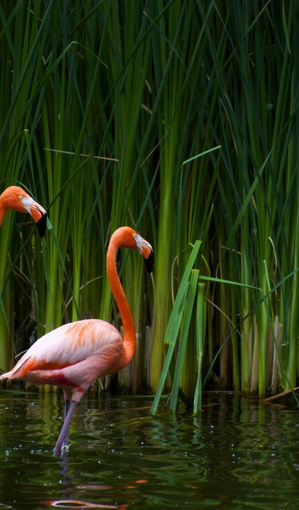 Wallpaper A pair of flamingos is in the water