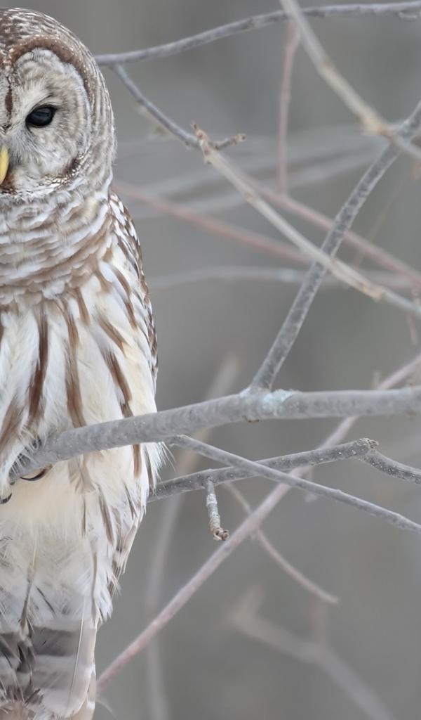 Wallpaper Owl on icy branches of a tree