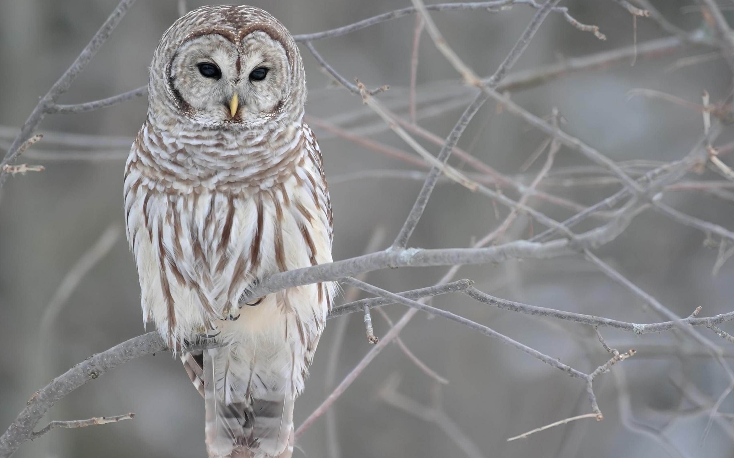 Wallpaper Owl on icy branches of a tree