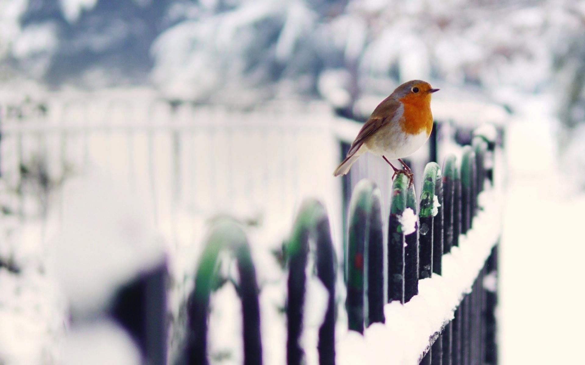 Wallpaper Robin bird in winter