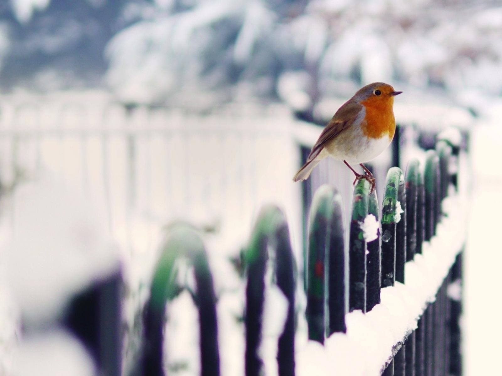 Wallpaper Robin bird in winter